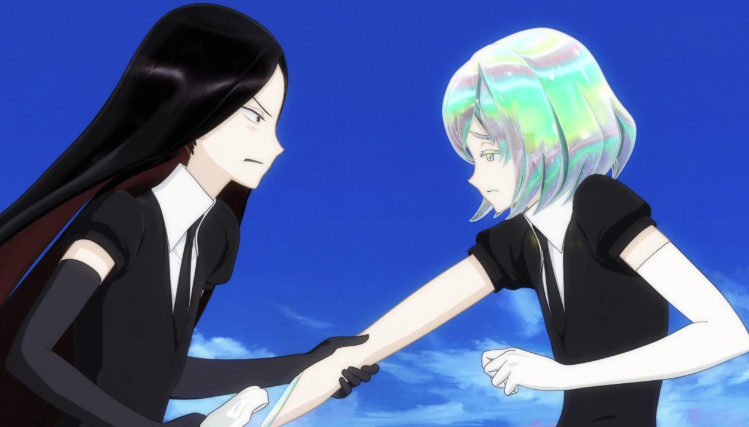 Voilà qui conclue ce petit tour d’horizon des propriétés de ces personnages attachants même si certaines restent encore pour moi un mystère (du moins à partir de ce qui est présent dans l’anime) comme par exemple l’utilisation de l’alliage métallique par Phos ou les trous béant de Padparadscha. De même il y a surement d’autres propriétés intéressantes liés aux personnages apparaissant plus tardivement dans l’œuvre d’origine mais j’ai décidé de me limiter à l’anime uniquement (pour le moment).