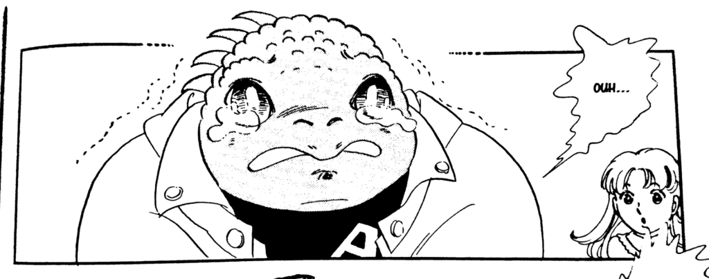 L’une des forces de Moto Hagio est sans conteste d’avoir écrit des histoires qui ne subissent pas le passage du temps. Qu’il s’agisse de son trait ou de ses thèmes de prédilection, chacun des deux est suffisamment universel pour perdurer autant que possible. On est loin du shojo lambda des années 2000 aux yeux atrophiés, bras rigides et tout un esprit de composition qui rend la lecture difficile de nos jours et même s’il y a de très bons shojo durant cette période, aucun n’a le style de cet auteur. Je ne monte pas Moto Hagio sur un piédestal, il ne s’agit pas de l’auteur le plus brillant du siècle dernier mais d’une femme qui sur toutes ces histoires a réussi à laisser paraitre sa trace. Et bien entendu, c’est aussi le cas de la Princesse Iguane.